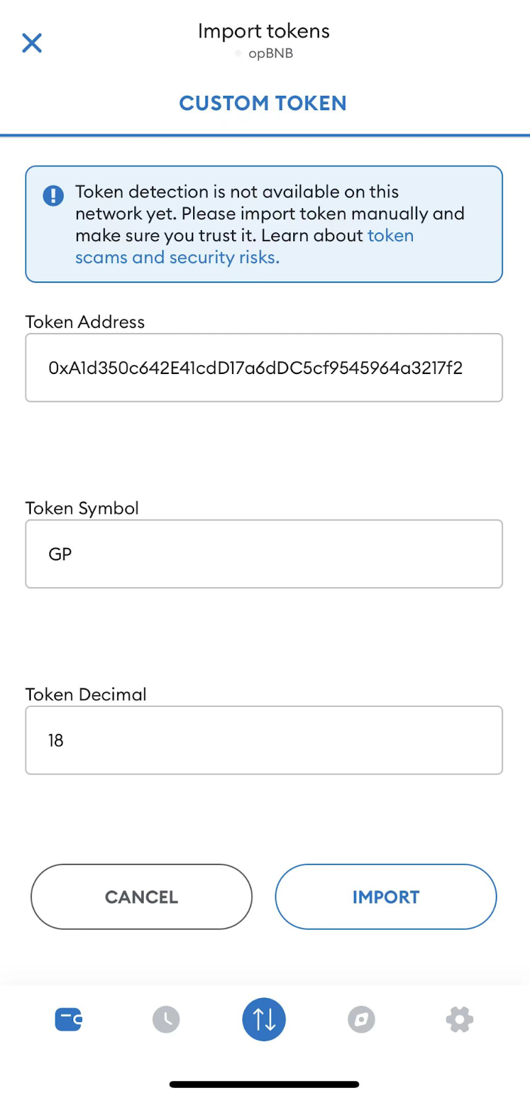 2. Click “Import tokens”. Input the following details. Then, click on“Import”.
